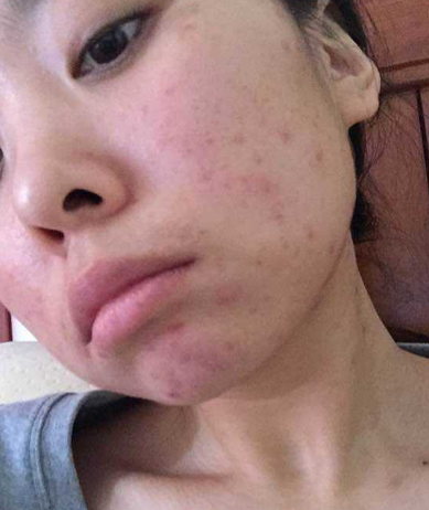 治疗前:31岁的赵女士喜欢用名贵的化妆品。不久前她的脸上出现了一些小疙瘩,就涂一些外用药。用了以后她发现病情缓解了,有的小疙瘩也消失了。可是,一停药就复发。