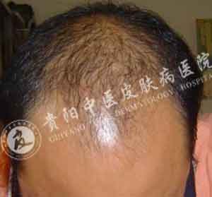 3.前头与顶部的头发稀疏、变黄、变软,终使额顶部一片光秃或有些茸毛