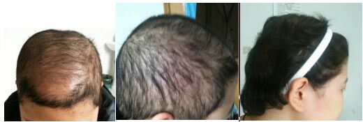 【治疗后】:后来在合肥淮大皮肤病医院皮肤病医院进行了治疗,一年多过去了,周女士已经长出了一头浓密黑发。